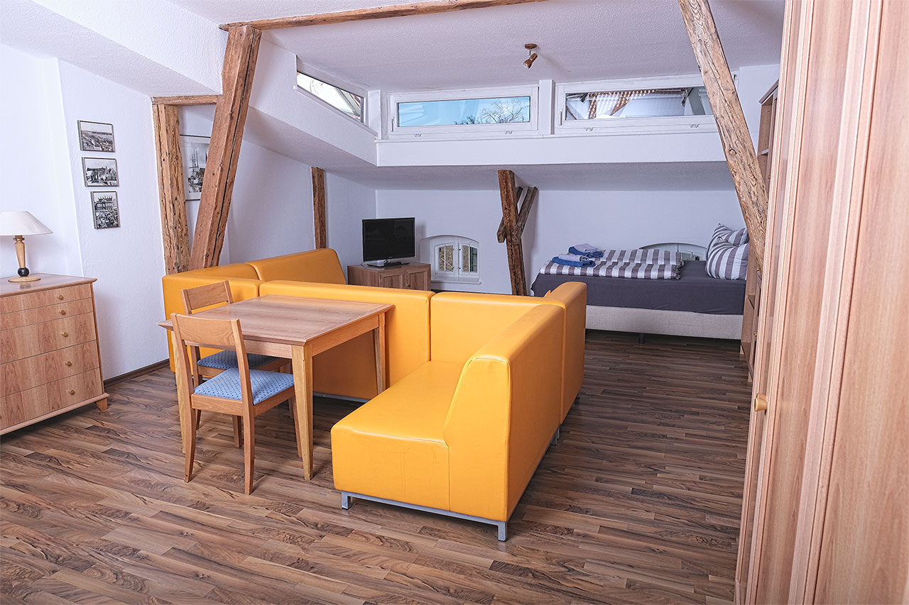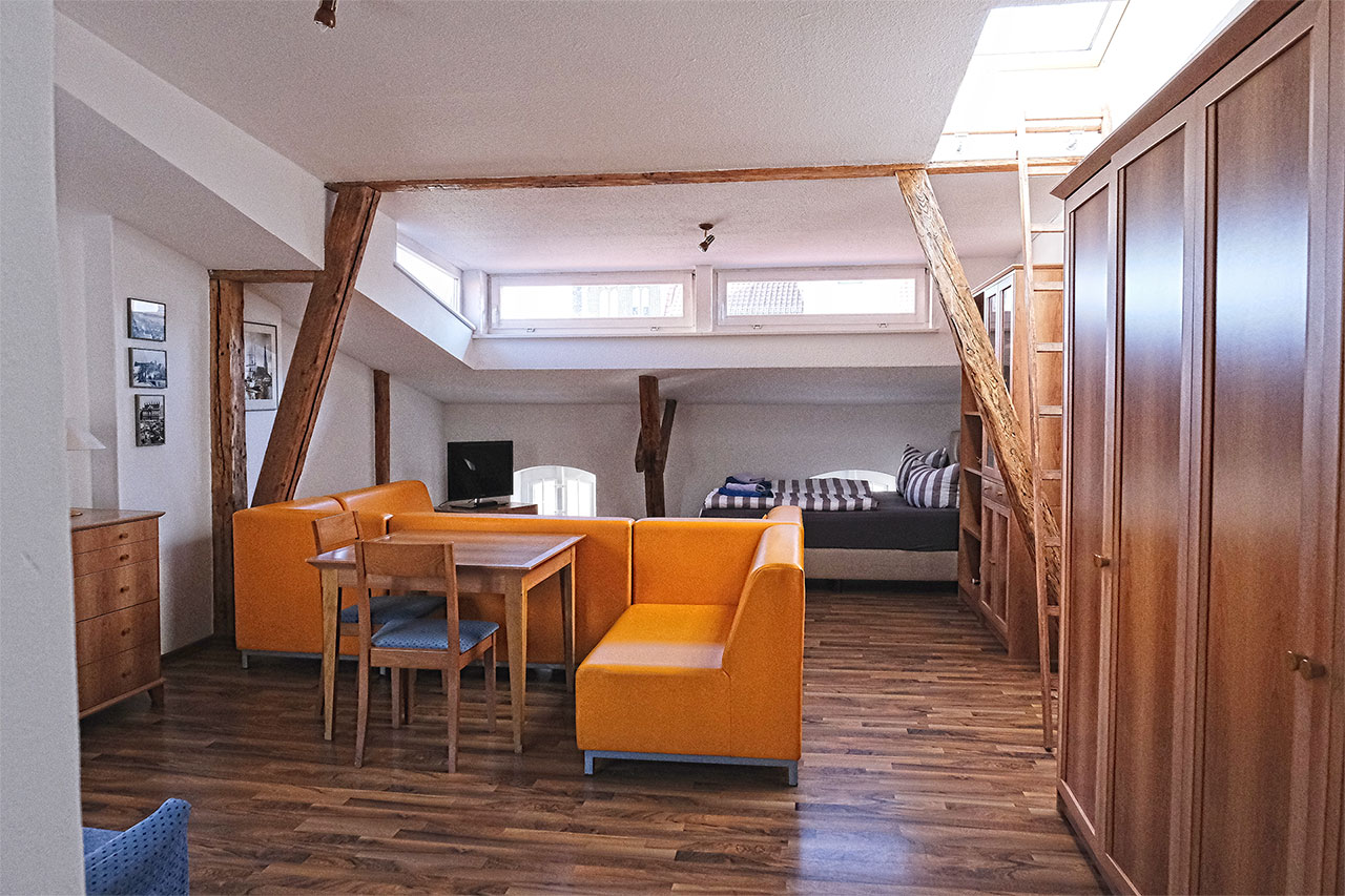 Die lichtdurchfluteten Apartments befinden sich im zweiten Geschoss des mittelalterlichen Gebäudes. Sie sind liebevoll ganz im baltisch-hanseatischen Stil eingerichtet.